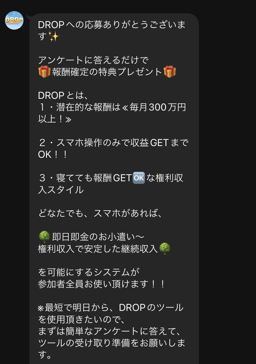 登録後、ドロップの公式アカウントからこんなメッセージが送られてきました。