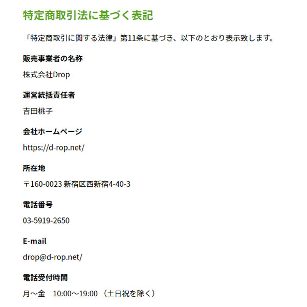 さて、DROP(ドロップ)に特定商取引法の記載があるか見てみましょう。