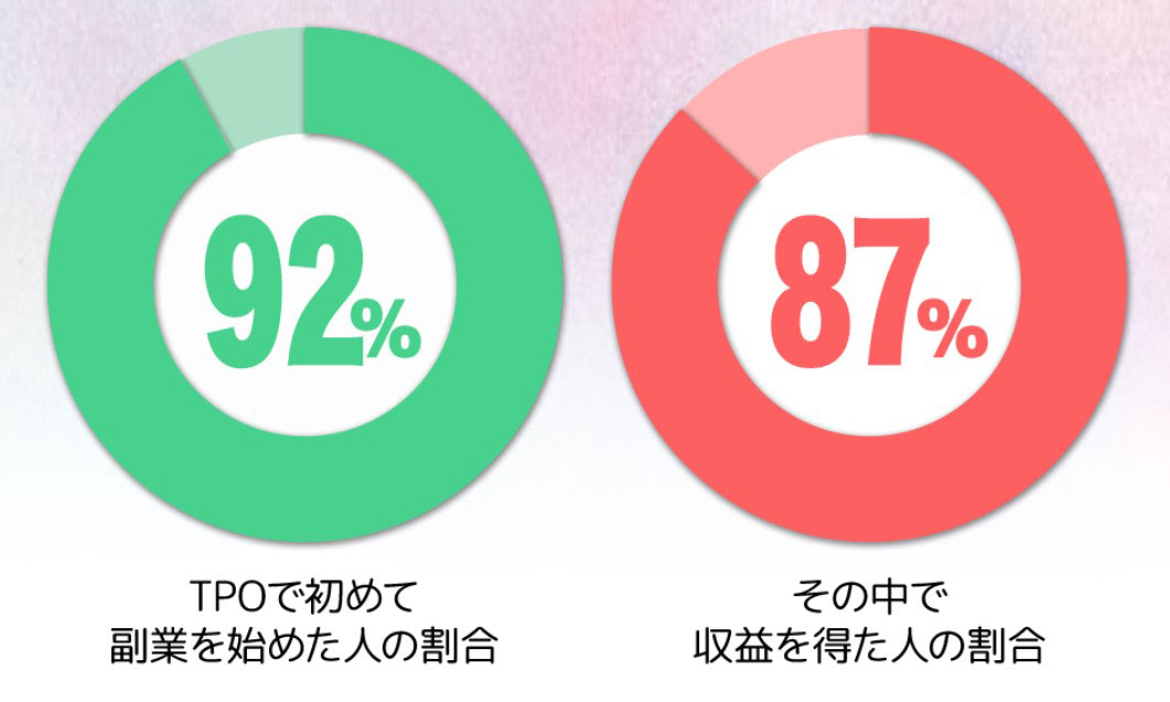 さらに初めての副業がTPOだったという人が92%、TPOで収益を得たという人は87%もいます。